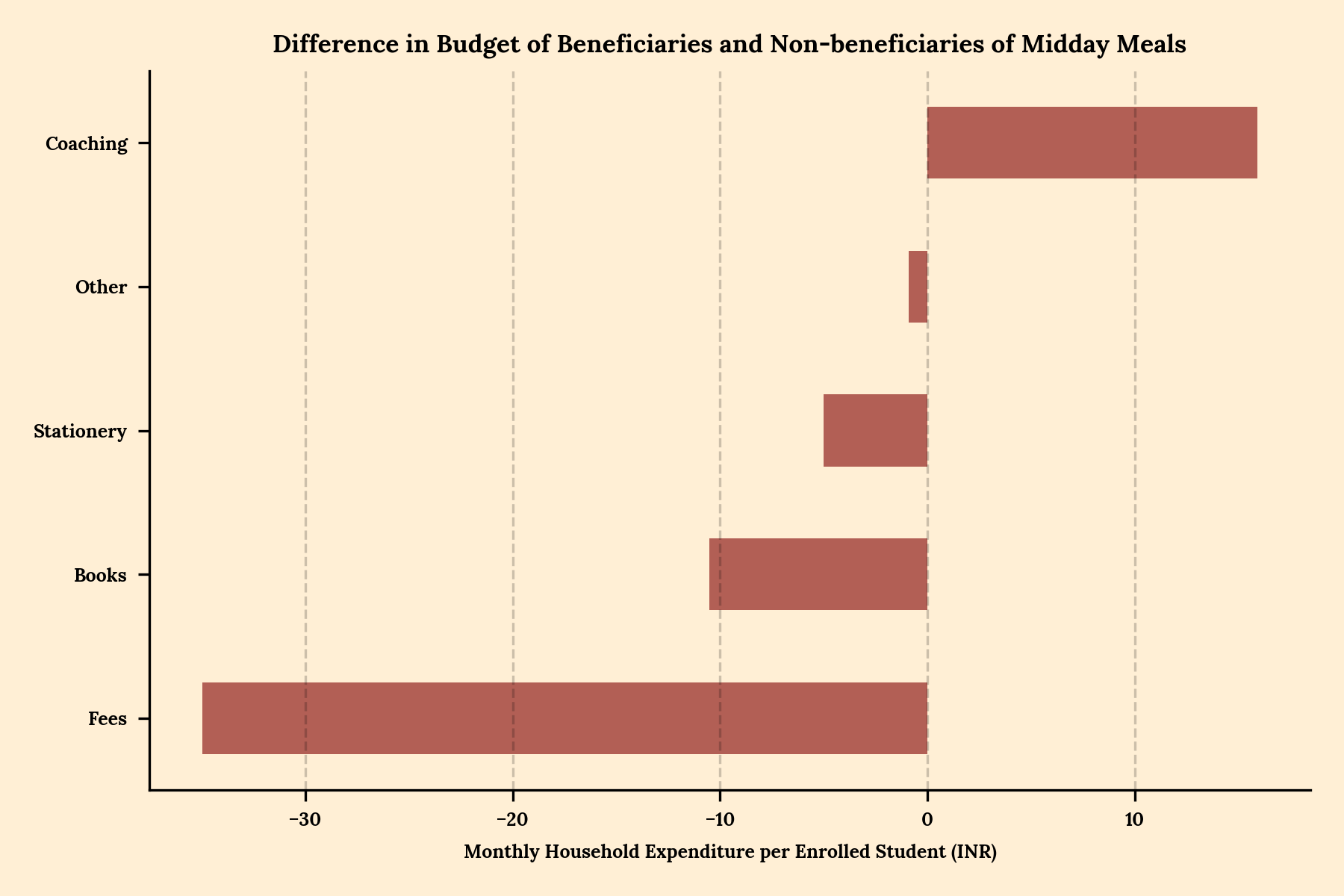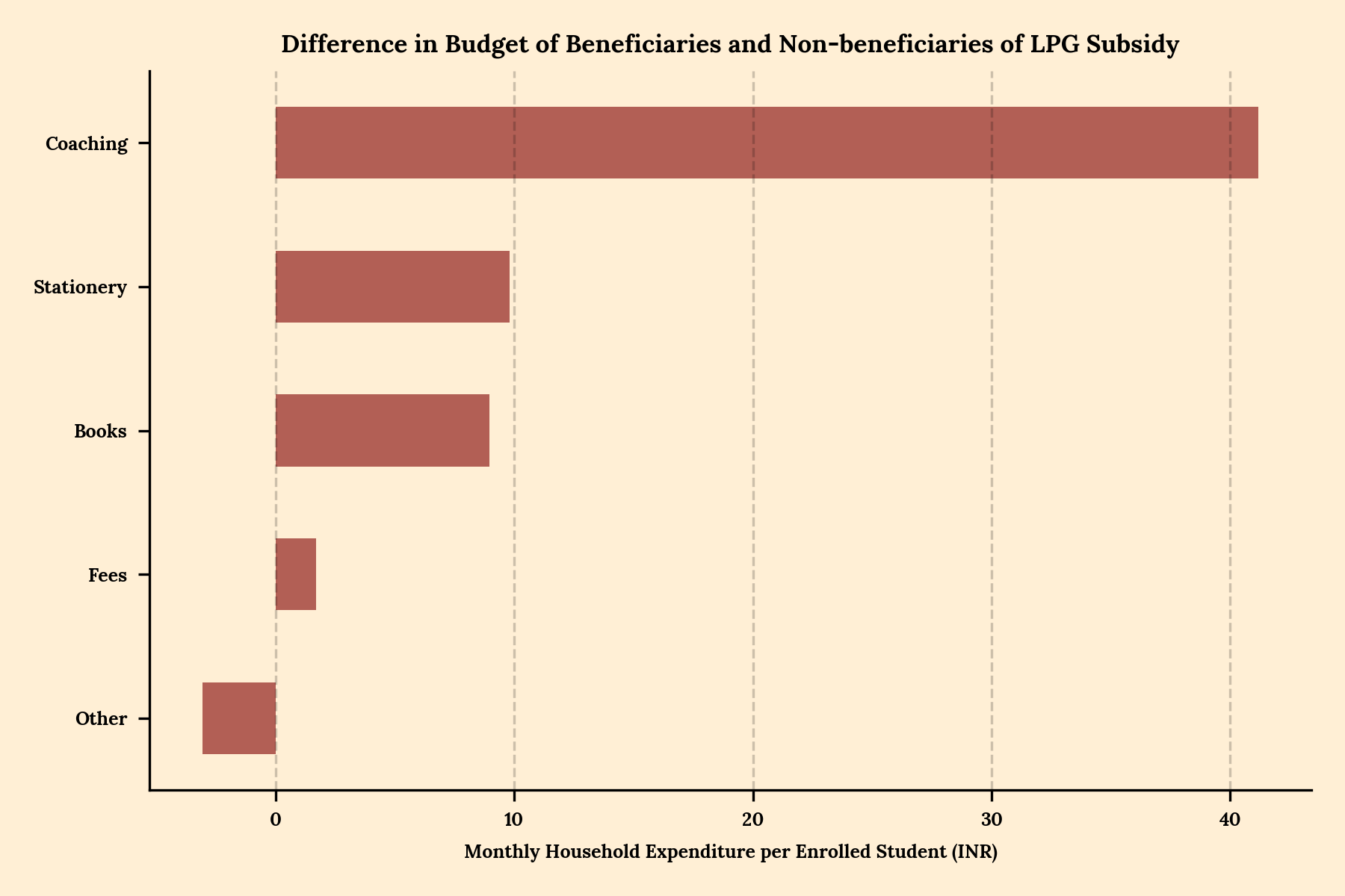 In education, too, we see a peculiar trend. Note that LPG subsidy is one of the only two interventions that gives a modest education spend among beneficiaries. For every student from a household which receives LPG subsidy, nearly Rs 60 is spent more on education than for a student from a non-beneficiary household. But of those 60 rupees, two-thirds goes to private coaching. Similar effects are seen for students who get midday meals at school, even if the effect is smaller in size.