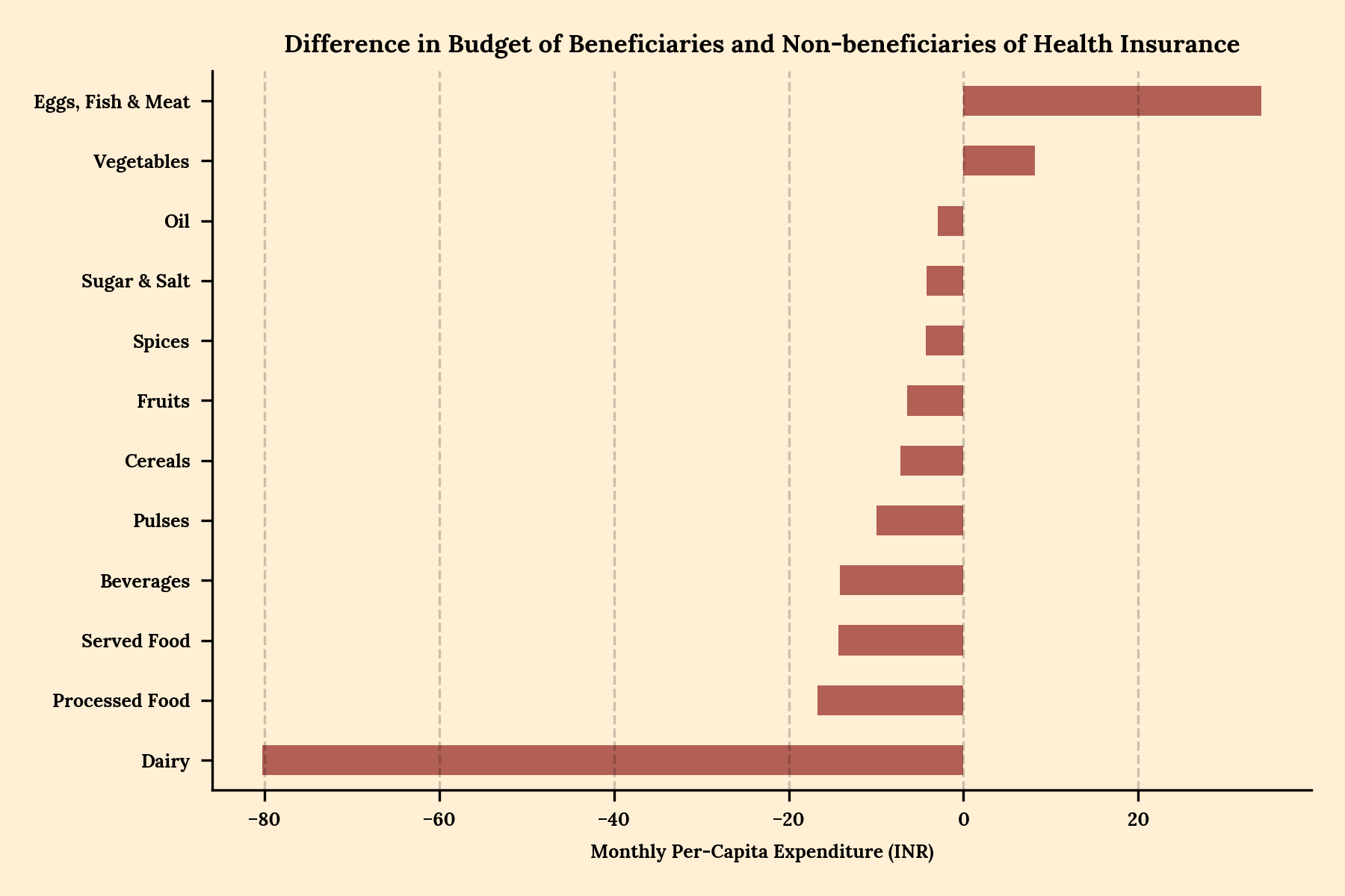 In the very first chart, beneficiaries of public healthcare spend slightly more on country liquor than those who are not beneficiaries. The difference is tiny—barely a few rupees a month—but it exists.